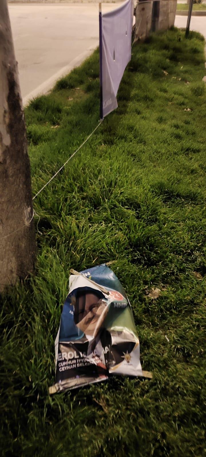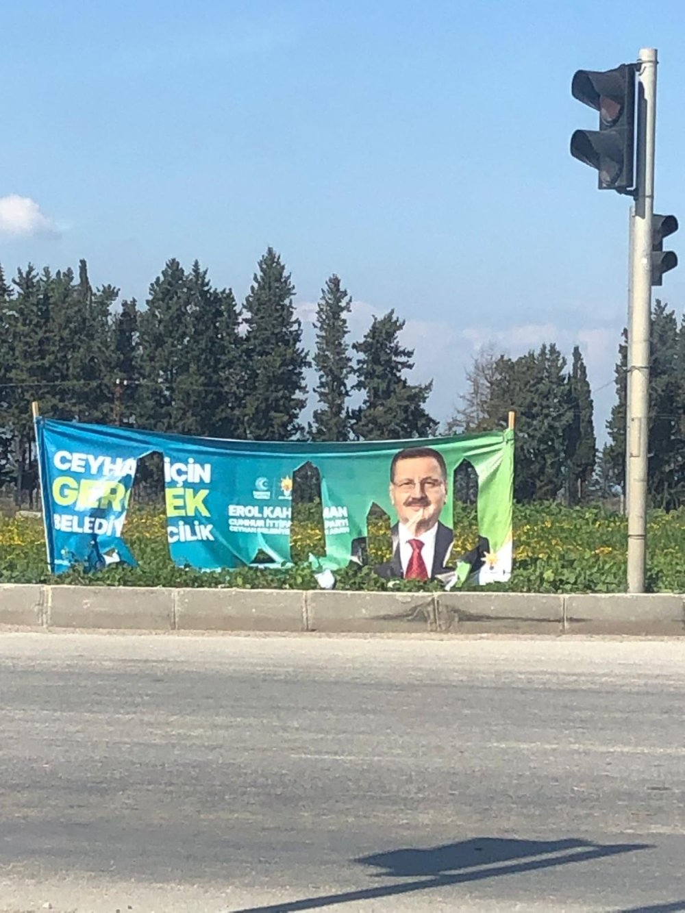 Olay, dün gece Soysalı Mahallesi'nde meydana geldi. AK Parti Ceyhan Belediye başkan adayı Erol Kahraman'ın yol kenarında park halindeki seçim minibüsü ateşe verildi. Kahraman'ın afişleriyle kaplı olan minibüsten alevlerin yükseldiğini fark eden vatandaşların ihbarı üzerine bölgeye itfaiye ekipleri sevk edildi. Kısa sürede söndürülen yangında, minibüs kullanılamaz hale geldi. Aynı gece Erol Kahraman'ın farklı mahallelerindeki afişlerinin de kesildiği saptandı. Polis her iki olayla ilgili soruşturma başlattı.