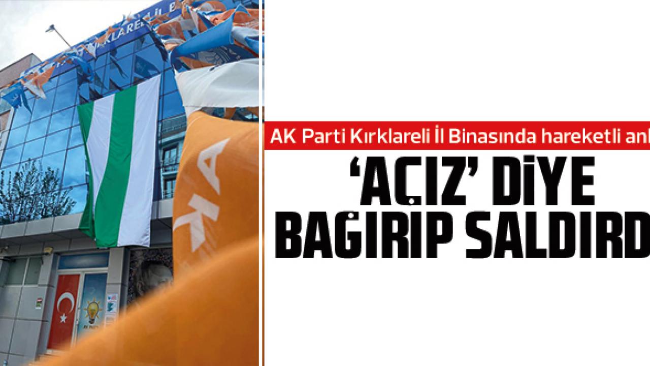 Kırklareli AK Parti İl Başkanlığı'na elinde balta ile gelen bir vatandaş, "Açız" diye bağırarak sağa sola saldırdı.