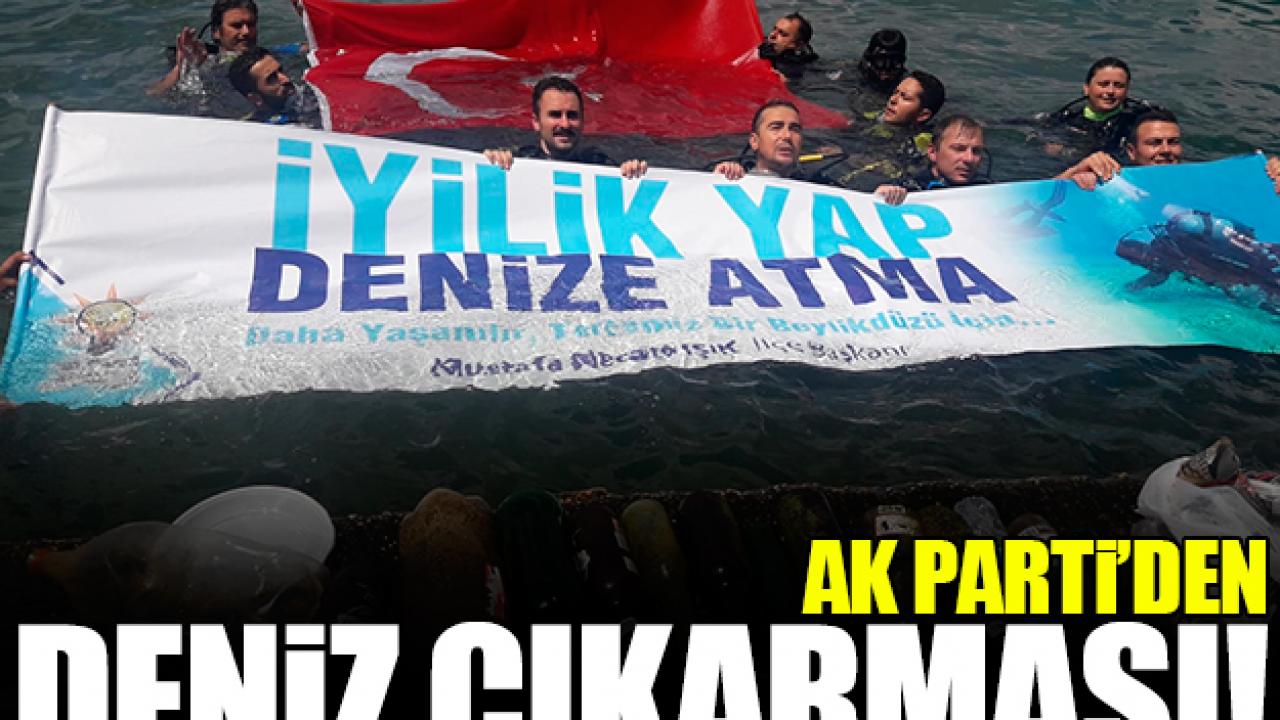 İstanbul ilçelerinden Beylikdüzü’nde ilginç bir gelişme yaşandı. Kentin AK Partili İlçe Başkanı Mustafa Necati Işık, rekortmen dalgıç Cem Karabay ve ekibiyle birlikte Marmara Denizi’nin derinliklerine daldı, deniz temizliği yaptı. Dalış ekibi, suyun 6 metre derinliğinde, patlamamış mermi, cam, bira şişeleri, plastik ve mangal gibi envai çeşit atıklarla karşılaştı. Kirletilen Marmara Denizi’ndeki son durumu vahim bulan AK Parti Beylikdüzü İlçe Başkanı Mustafa Necati Işık’ın açıklaması ise, “Beylikdüzü’ndeki temizliğe denizden başladık, devamı gelecek” şeklinde…