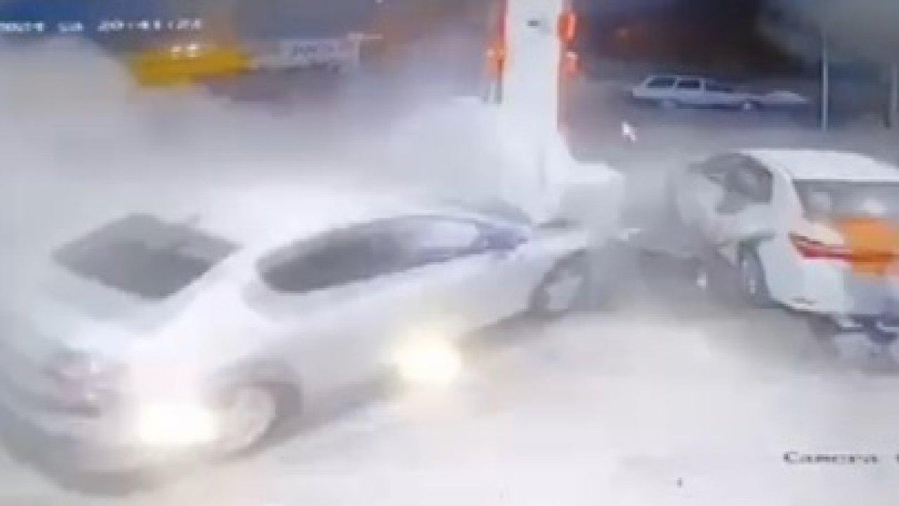 Bu arada, kazanın güvenlik kamerası görüntüleri ortaya çıktı. Görüntülerde akaryakıt istasyonu görevlisinin yerinden ayrıldıktan kısa süre sonra otomobilin pompaya çarptığı görüldü.