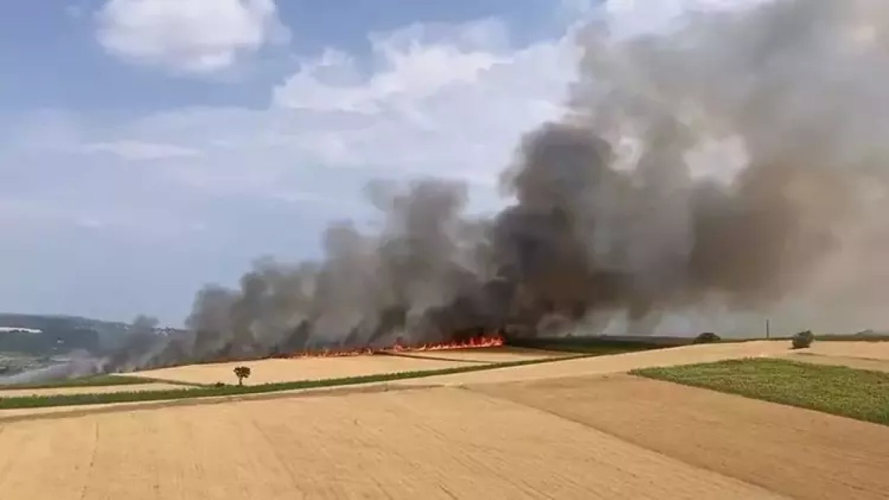 Hamzabey Mahallesi'nde saat 10.30 sıralarında iddiaya göre enerji nakil hattına çarpıp yanarak düşen yabani kuşlar tarlada yangına neden oldu. Alevler rüzgarın da etkisiyle kısa sürede büyürken, ihbarla bölgeye itfaiye ve Orman İşletme Müdürlüğü ekipleri sevk edildi. Yangın 1 saatte kontrol altına alınıp söndürüldü. Yangında ekili 80 dönüm buğday yandı.