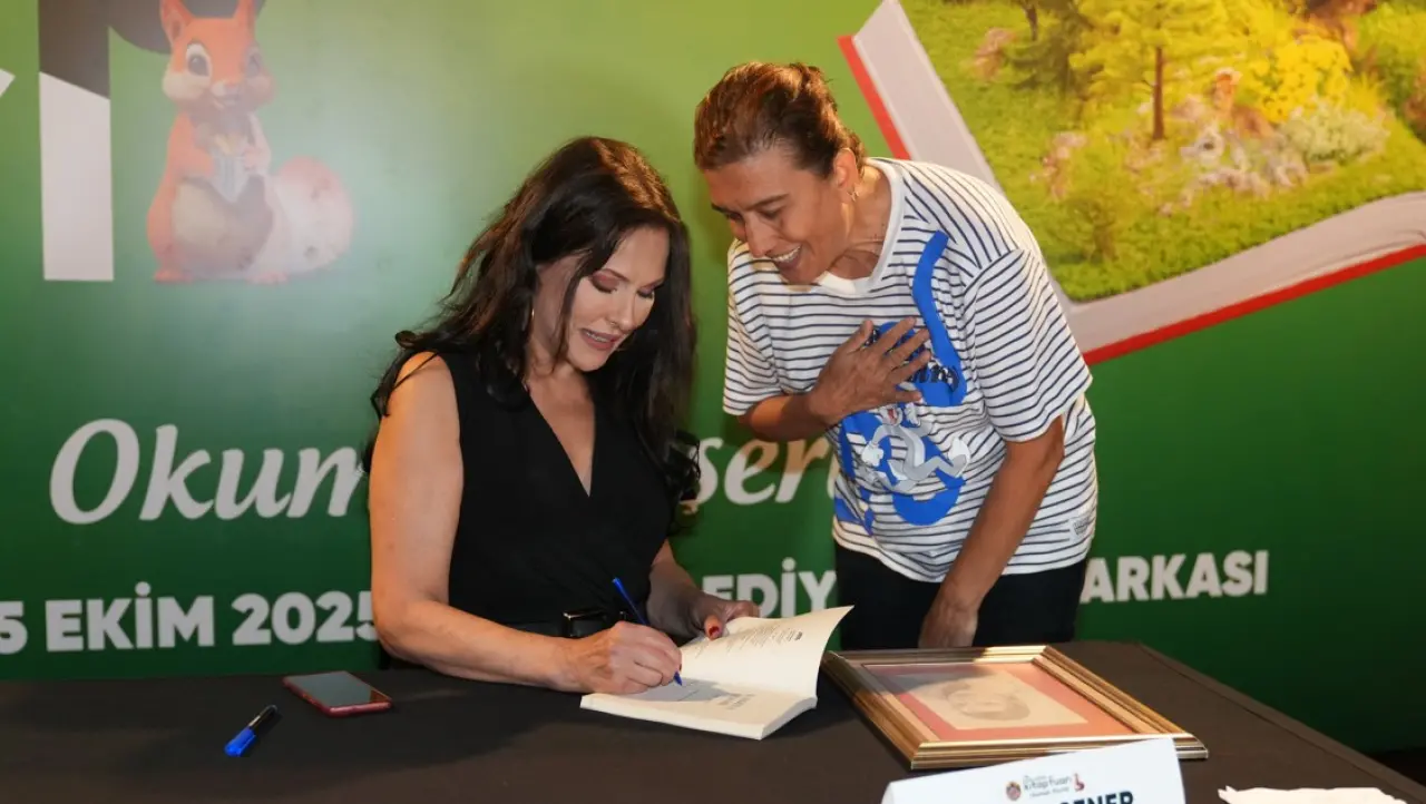 Hayranlarıyla tek tek ilgilenen sanatçı, kitaplarını imzalarken bol bol sohbet edip fotoğraf çektirdi.