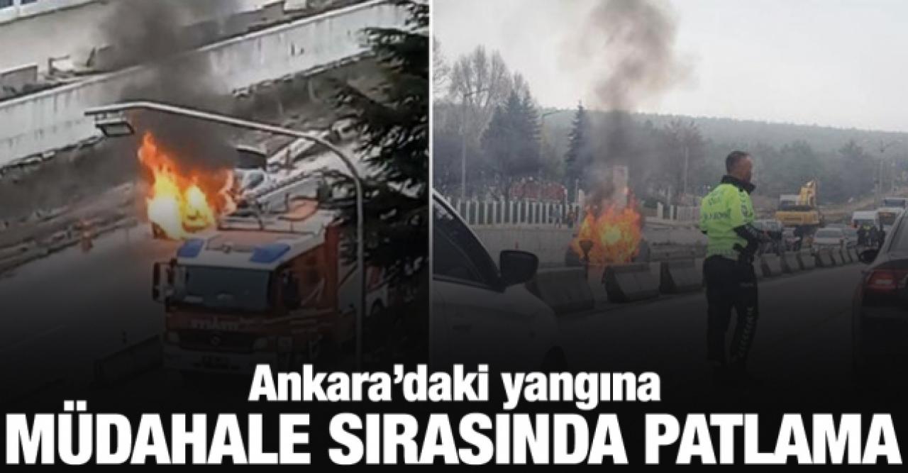 Ankara'da, seyir halindeyken motor kısmından alev alan otomobilde, itfaiye ekibi müdahale edeceği sırada patlama meydana geldi. Patlama anı, cep telefonu kamerasına yansırken, yaralanan olmadı.