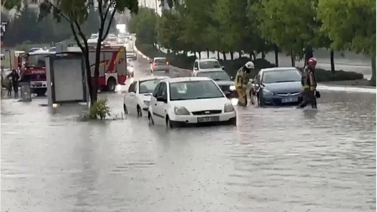DHA - Etimesgut'ta öğleden sonra başlayan sağanak ve dolu yağışı, hayatı olumsuz etkiledi. Kısa sürede yollar sular altında kalırken, araçlar ilerlemekte güçlük çekti. Çevredekiler ve sürücüler zor anlar yaşadı. Bazı araçlar da suda kaldı.