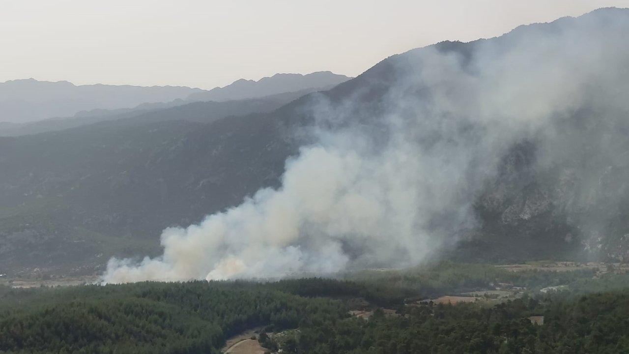 Yangında 1,5 hektar alan zarar görürken, ekiplerin bölgede soğutma çalışmaları sürüyor.