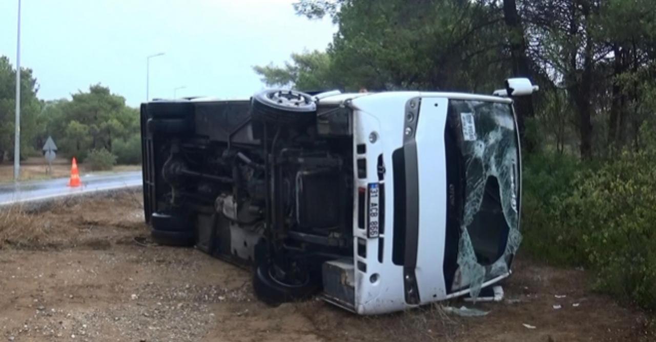Antalya'nın Manavgat ilçesinde yağış nedeniyle kayganlaşan yolda, sürücünün kontrolünden çıkıp devrilen tur otobüsündeki 7'si Rus turist, 8 kişi yaralandı.
