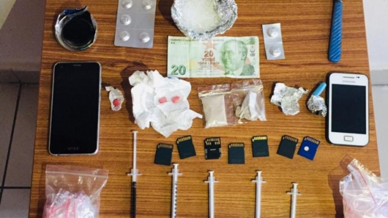 Evde yapılan aramalarda 81 gram eroin, 3 uyuşturucu hap, 4 kullanılmamış şırınga ile içinde yaklaşık 3 gram uyuşturucu madde bulunan şırınga, 7 kırmızı reçeteli hap, 145 poşet, 2 kullanılmış alüminyum folyo, 2 hafıza kartı ele geçirildi. Emniyetteki işlemleri tamamlanan şüphelilerden B.C. savcılık talimatıyla emniyetten serbest bırakılırken, H.H.Ö. ise, sevk edildiği adliyede çıkartıldığı mahkeme tarafından tutuklandı. DHA