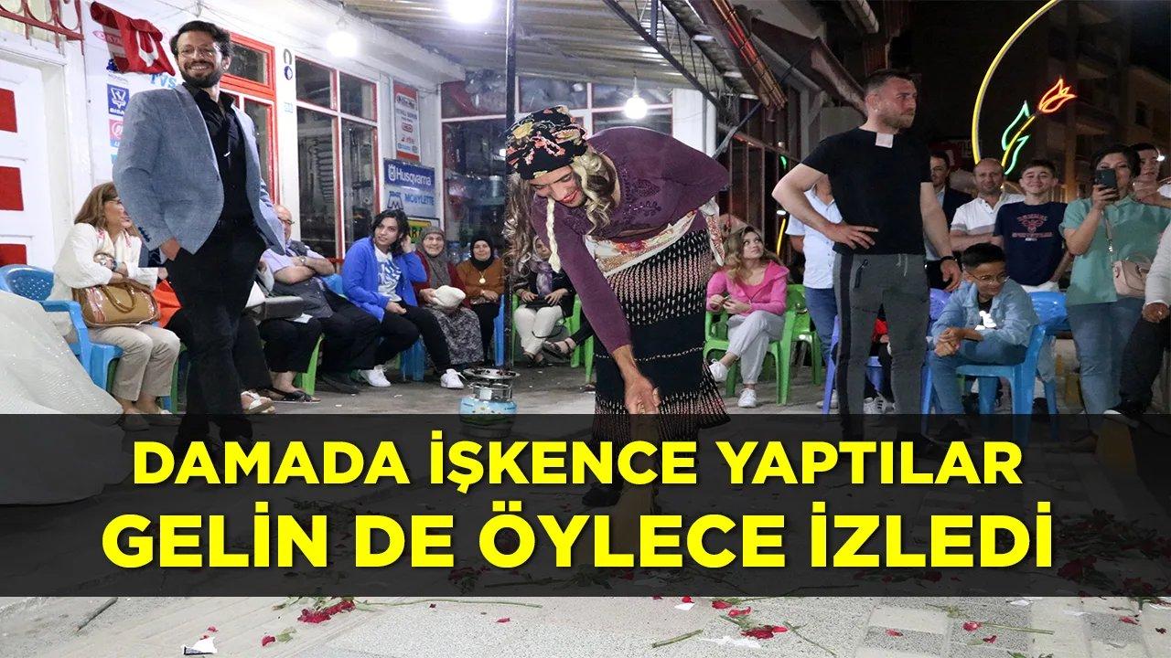 Damadın arkadaşlarından Niyazi Sivrikaya, "İlçemizde düzenlenen damada işkence etkinliği devam ediyor. Bu etkinliğin amacı damadın yenge hanımı üzmemesi. İlçemizde etrafa zarar vermeden, taşkınlık çıkarmadan bu etkinlik yapılıyor" dedi.