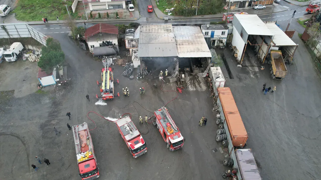 Yangının başladığı bölümden yükselen alevler, tamirhanede bulunan tırları etkisi altına aldı. Kısa süre içinde büyüyen yangın çevrede paniğe neden oldu.