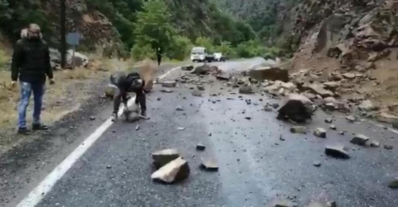 Bazı sürücüler, yola düşen kaya parçalarını kaldırmaya çalıştı. İhbar üzerine heyelanlı bölgeye Karayolları ekipleri sevk edildi.