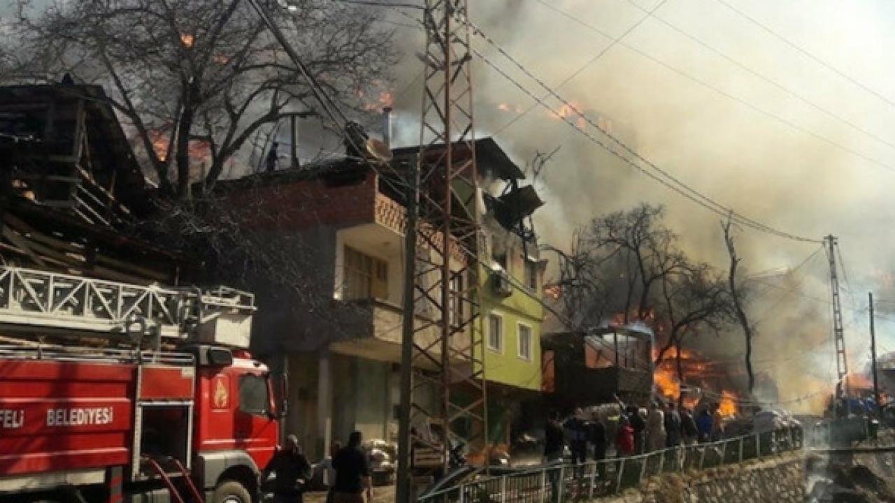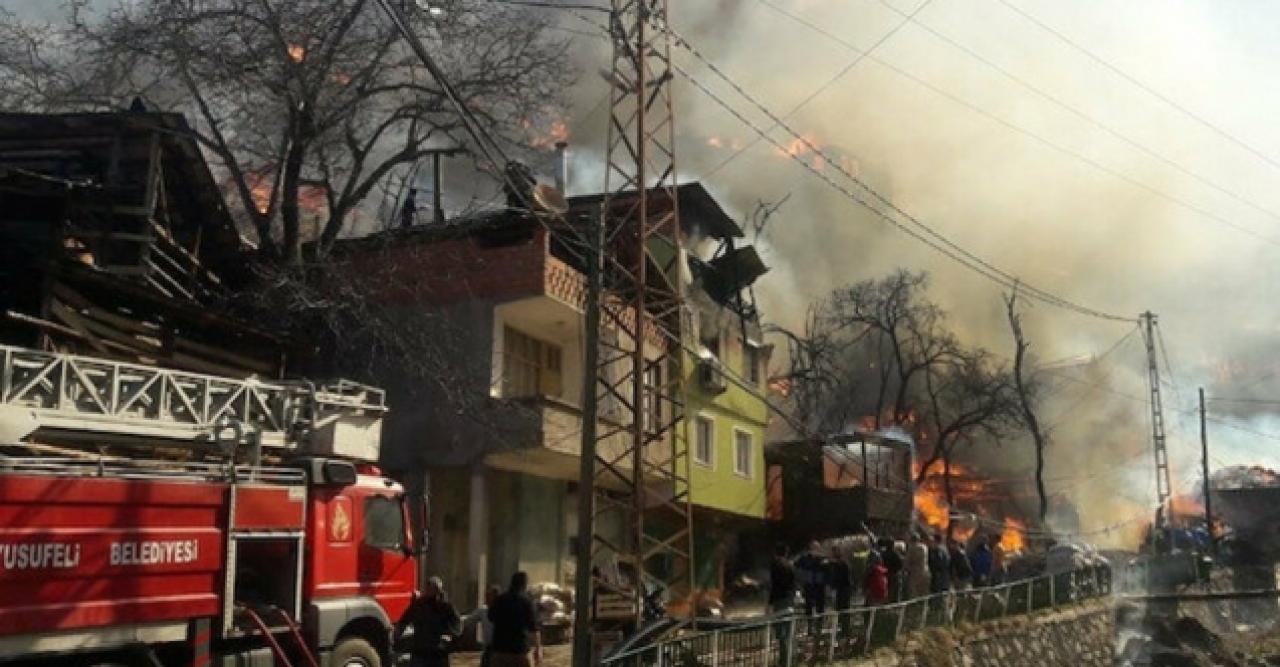 Yusufeli ilçesine bağlı Dereiçi Köyü'nde öğle saatlerinde ahşap bir evde yangın çıktı. Alevler rüzgarın da etkisiyle kısa sürede yayılarak çevredeki evlere de sıçradı. İhbar üzerine köye, belediyeye ait itfaiye ekipleri ile Orman Müdürlüğü’ne bağlı arazözler ve sağlık ekipleri sevk edildi. Alevlerin 60'a yakın eve sıçradığı yangına itfaiye ekipleri müdahale etti. Ekipler, alevlerin diğer evlere de sıçramaması için yoğun çaba harcıyor.