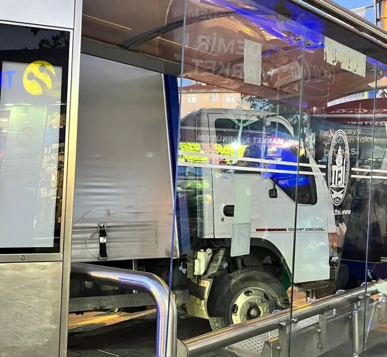 Cadde üzerinde ilerleyen kamyon, henüz belirlenemeyen bir nedenle kontrolünü kaybederek bir anda otobüs durağına daldı.