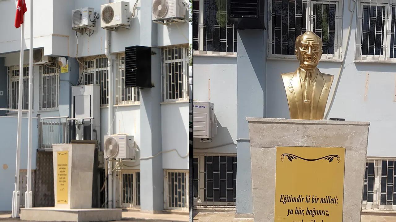 Merkez Mahallesi Mehmet Akif Ersoy İlk ve Ortaokulu idarecileri, sabah okula geldiklerinde bahçedeki mermer kaidedeki Atatürk büstüne zarar verildiğini gördü.