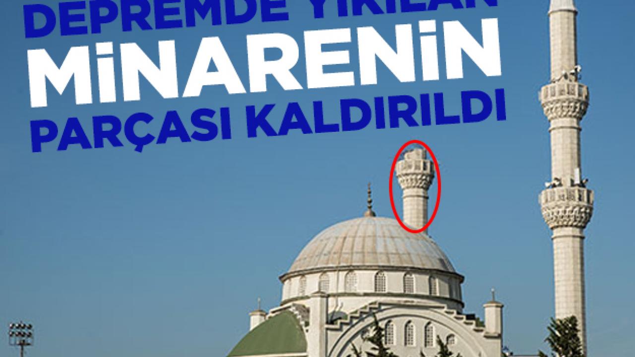 Avcılar'da deprem sırasında yıkılan minarenin parçası kaldırıldı.