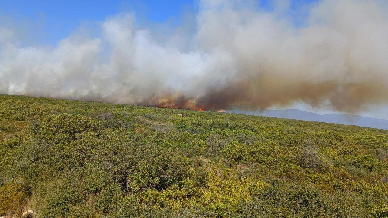 Aydın'ın Didim ilçesinde maki yangını çıktı. Alevlere havadan ve karadan müdahaleye başlandı.