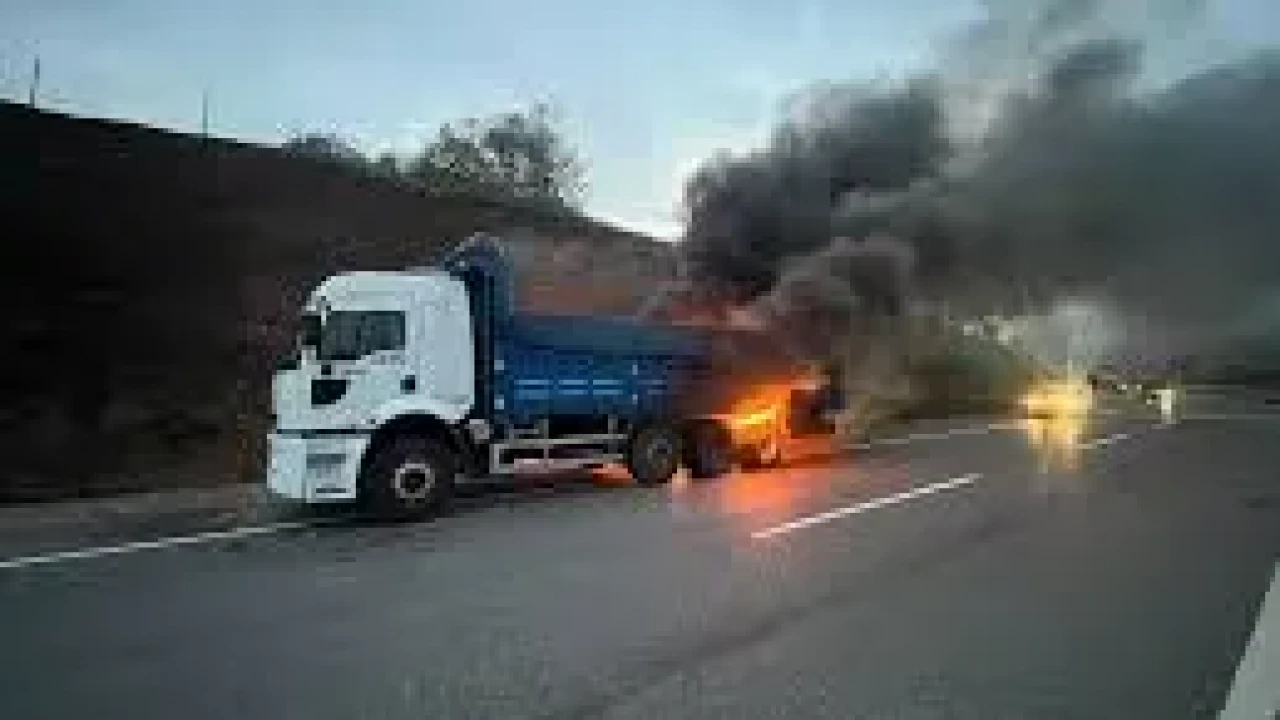 Aynı noktada yarım saat arayla iki kamyon yandı