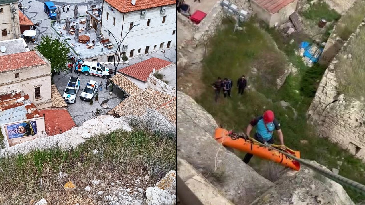 Türkiye'nin önemli turizm merkezlerinden Kapadokya bölgesine eşiyle balayı için gelen Hatice Atay (43), tarihi Ortahisar Kalesi'nde yaklaşık 3 metre yükseklikten düşüp, ayağını kırdı.