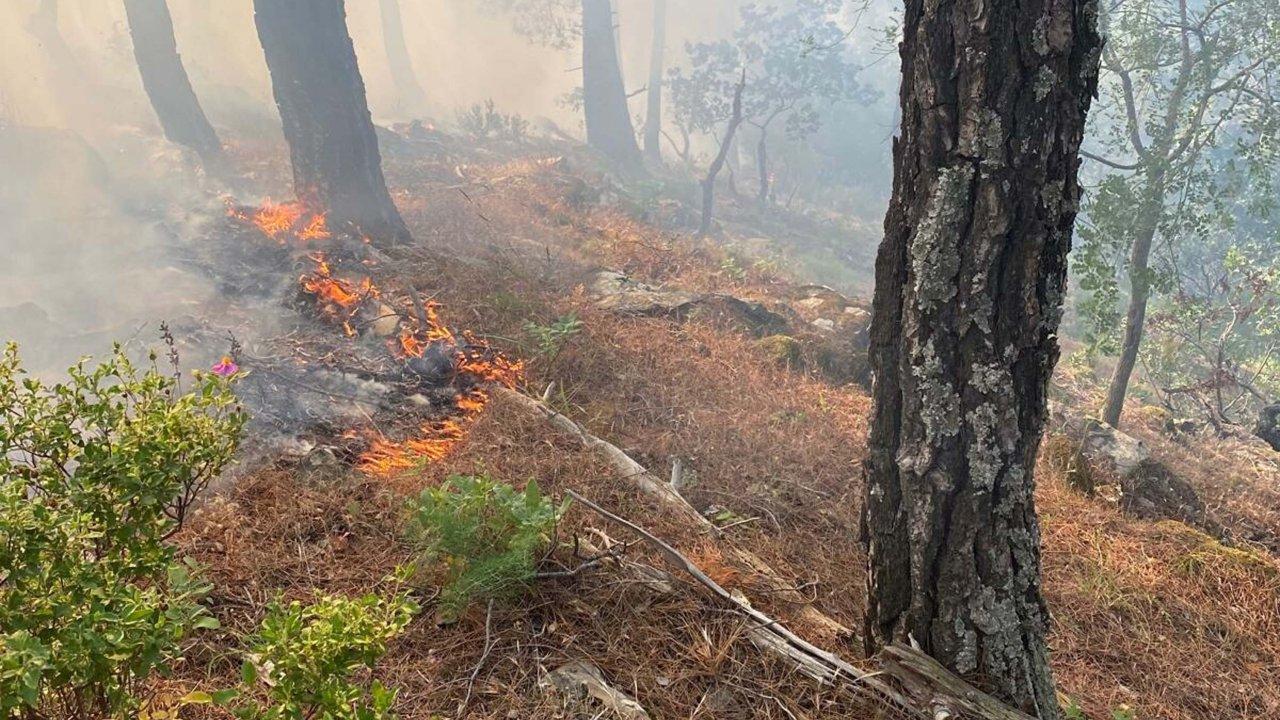 Soğutma çalışmalarının sürdüğü ormanda, yangının 1 hektarlık alanda etkili olduğu belirtildi.