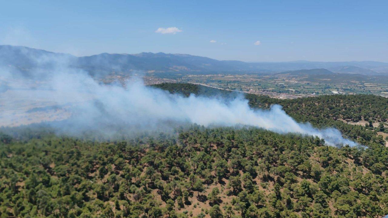 Balıkesir'in Sındırgı ilçesinde orman yangını çıktı. Ekipler, yangına havadan ve karadan müdahale ediyor.