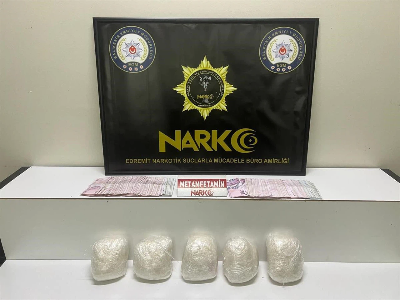 Edinilen bilgiye göre, şüphe üzerine durdurulan bir araçta yapılan aramalarda 5 kilo metamfetamin ile suçtan elde edildiği değerlendirilen 90 bin TL nakit para ele geçirildi. Operasyon kapsamında 4 şüpheli gözaltına alındı.