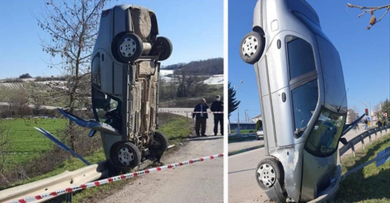 Kocaeli'nin Kandıra ilçesinde sürücüsünün kontrolünü yitirdiği otomobil, bariyerlere çarptı. Ön kısmı bariyerlere sıkışınca dik vaziyette duran otomobilin sürücüsü yaralandı.