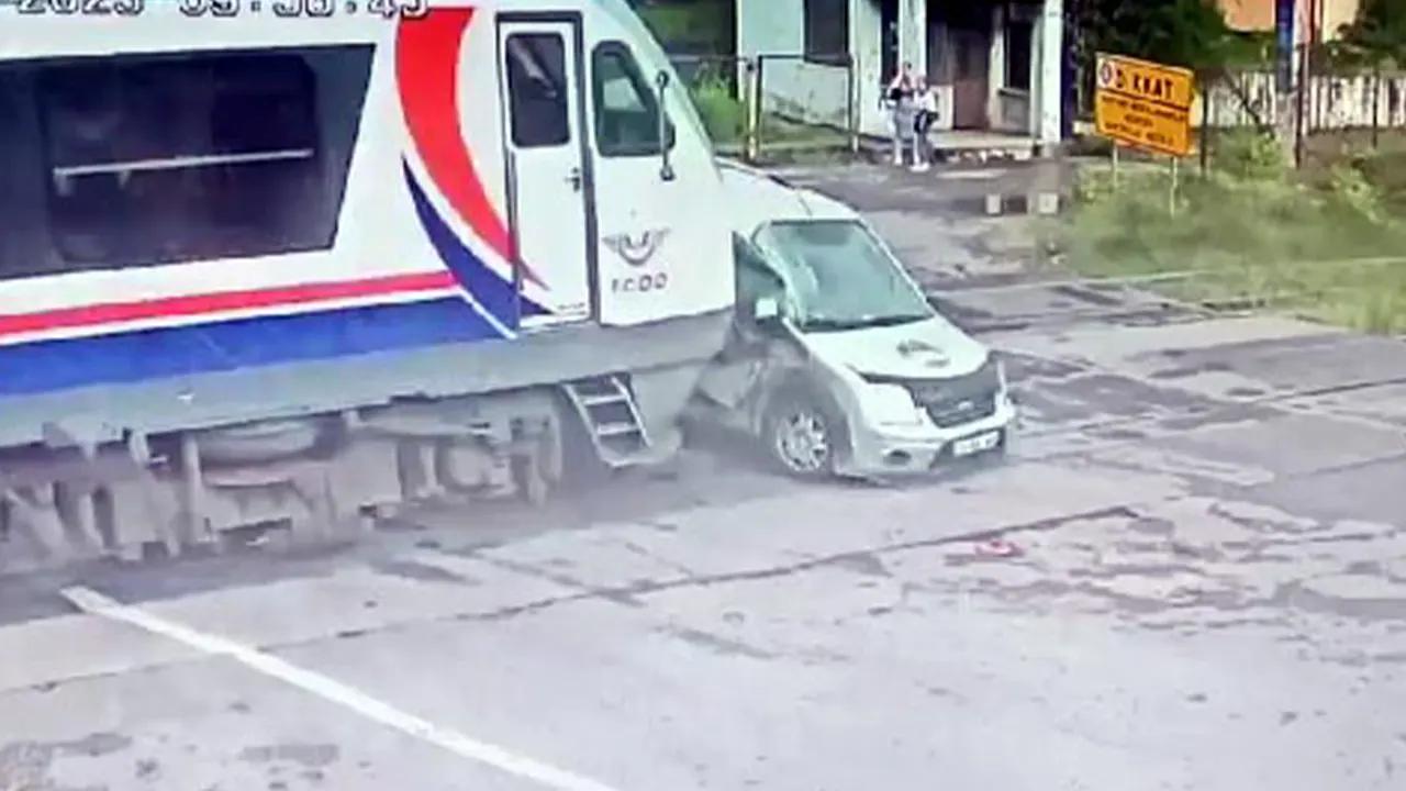 Zonguldak'ın Çatalağzı beldesinde, hemzemin geçitte trenin çarptığı hafif ticari aracın sürücüsü Doğan Demir (45), ağır yaralandı.