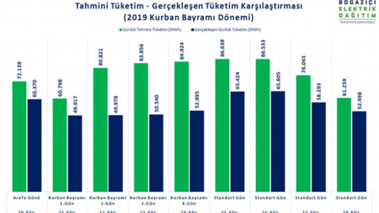 İstanbul Avrupa Yakası’nda elektrik dağıtım hizmeti veren Boğaziçi Elektrik Dağıtım A.Ş. (BEDAŞ), Kurban Bayramı tatilinin elektrik tüketimi üzerindeki etkisine dair özel bir çalışma hazırladı. Özellikle bayram tatilinin hafta başına gelmesi, iki hafta sonunun birleştirilerek tatil süresinin uzatılmasının da etkisi ile İstanbullular sahillere koşarken tarihi kentteki elektrik tüketimi de düştü.