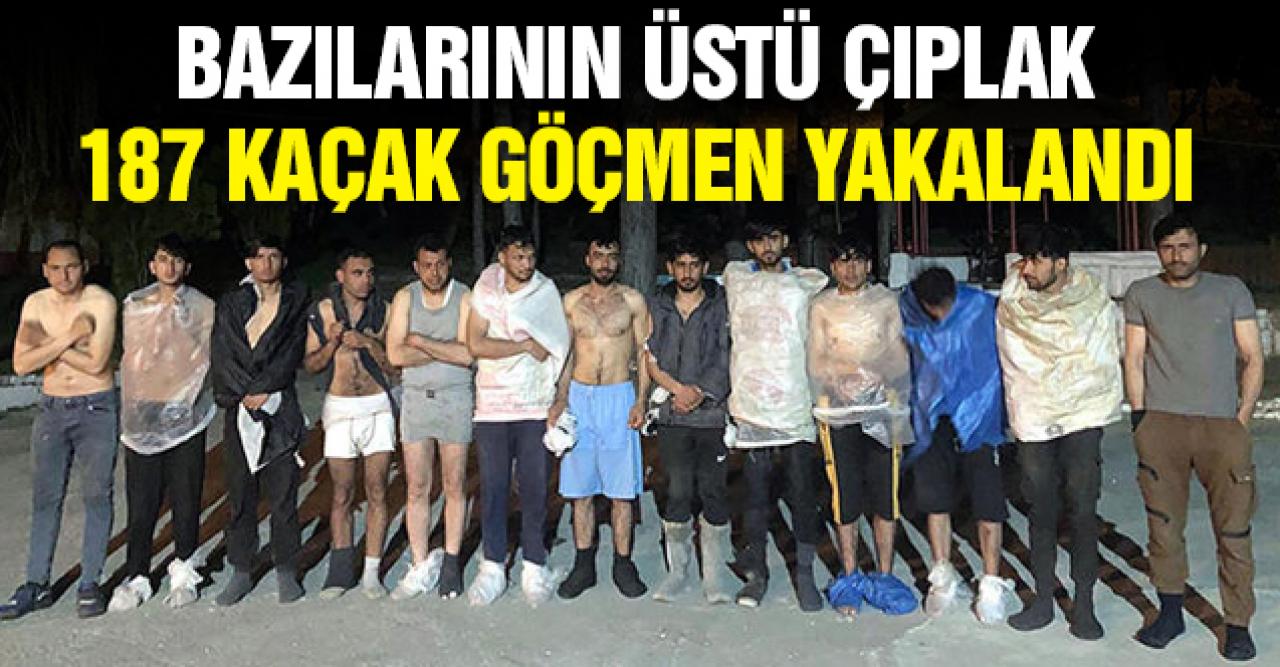 Kırklareli'de Bulgaristan sınırında bazılarının üstleri çıplak 187 kaçak göçmen yakalandı.
