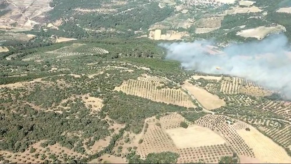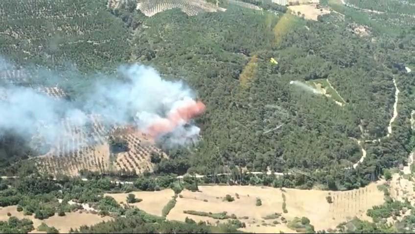 İzmir'in Bergama ilçesinde orman yangını çıktı. Alevlere havadan ve karadan müdahale ediliyor.
