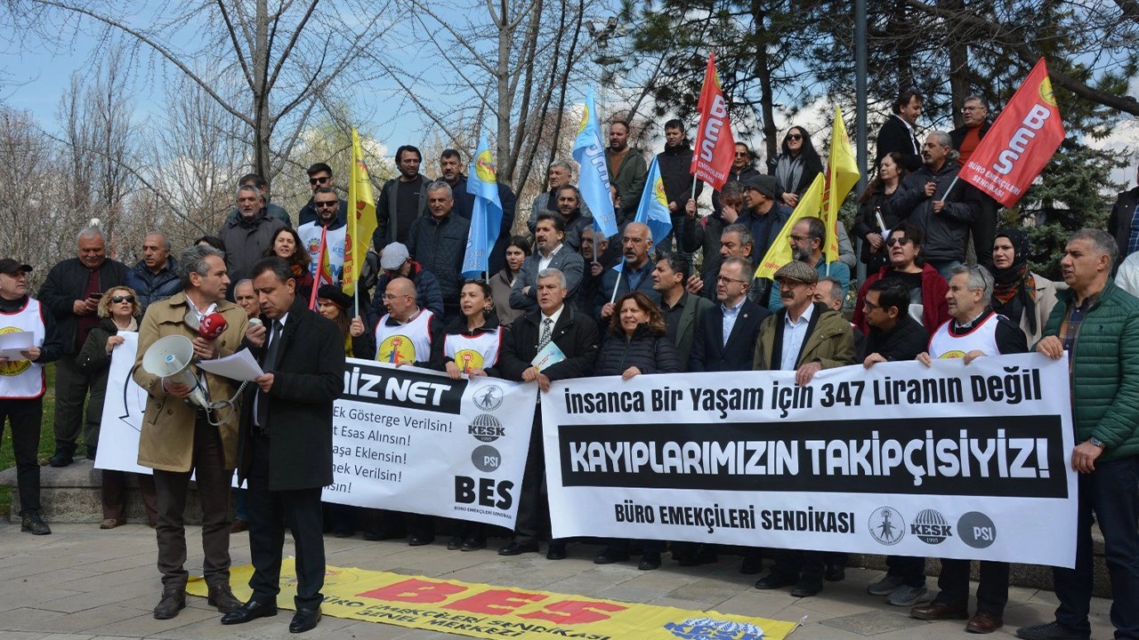 ANIL BODUÇ- KESK'e bağlı Büro Emekçileri Sendikası (BES), Ankara'da TBMM önünde açıklama gerçekleştirdi. Açıklamayı okuyan BES Genel Başkanı Özer Avanaş, “Bizlere zam adı altında lütufmuş gibi verilen maaş zamları yaşanan gerçek enflasyon rakamları karşısında değersizleşmekte, emeği ile geçinen bizler her seferinde daha fazla yoksullaşırken, iktidar gölgesinde büyüyen sermaye gruplarına daha fazla kaynak aktarılmaktadır. Bu emek karşıtı ekonomik politikalar daha fazla sürdürülemez, sürdürülmemelidir. Her seferinde ekonomimiz büyüyor yalanına sarılanlara sesleniyoruz. Madem ekonomimiz büyüyor, o zaman biz emekçilere büyüyen bu ekonomiden neden hakkımız olan payı vermiyorsunuz?” diye konuştu.