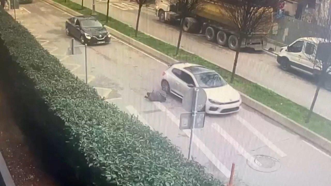 Kaçan şüpheliler Bolu'da yakalanarak gözaltına alındı. Otomobilde vurulan Erhan Y.'nin yola atıldığı anlar güvenlik kamerasına saniye saniye yansıdı.