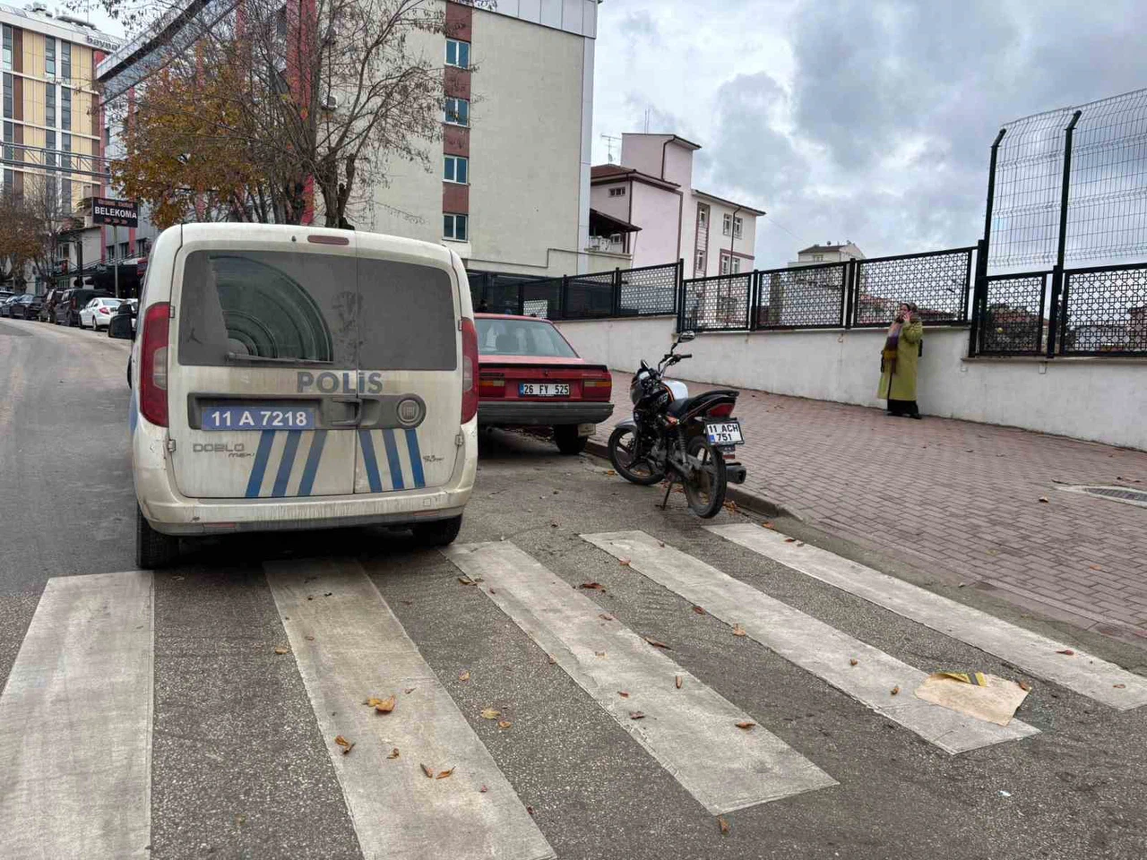 Alınan bilgilere göre, Bilecik merkez Atatürk Bulvarı’ndan Tepebaşı mevkiine seyir halinde olan 11 TH 533 plakalı hafif ticari araç sürücüsü A.K., yaya geçidinden geçmek isteyen bir şahsa yol vermek amacıyla durdu. Bu sırada aynı yönde ilerleyen 11 ACH 751 plakalı motosikletin sürücüsü M.T.K., duramayarak hafif ticari araca arkadan çarptı.