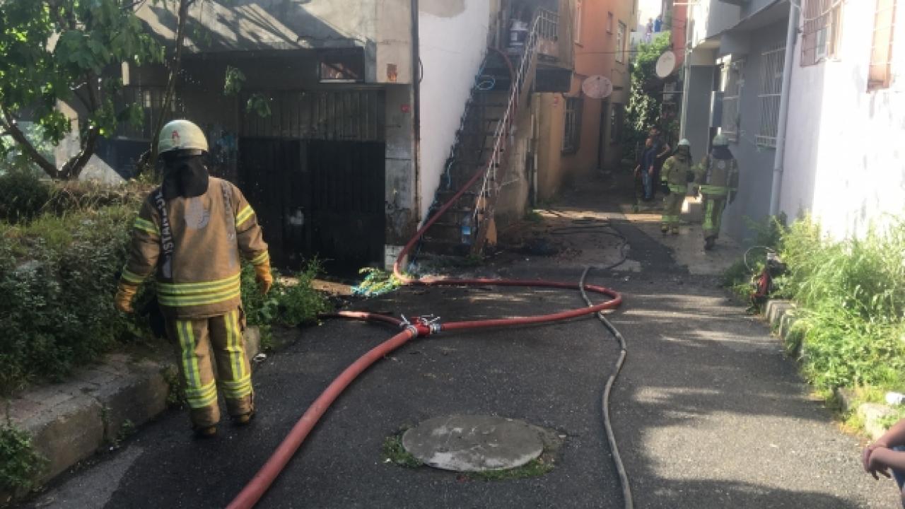 Beyoğlu'nda iki katlı bina alev alev yandı. İkinci katta oturanlar kendilerini son anda dışarı attı. Yanan evin çökme riski olduğu belirtildi