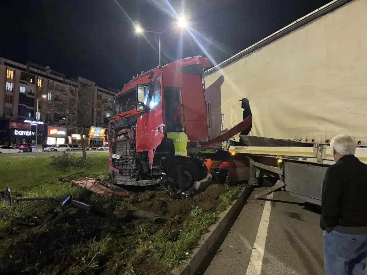 Sürücünün yaptığı kritik manevra sonrası direksiyon hakimiyeti kaybolan ağır vasıta, yol ortasındaki refüje girerek durabildi. Kazanın ardından bölgeye sevk edilen ekipler, araçta maddi hasar meydana geldiğini tespit ederken, olası bir can kaybı veya yaralanmanın yaşanmaması teselli kaynağı oldu. Kaza nedeniyle karayolunda trafik bir süre kontrollü olarak sağlandı; aracın çekilmesinin ardından ulaşım tekrar normale döndü.