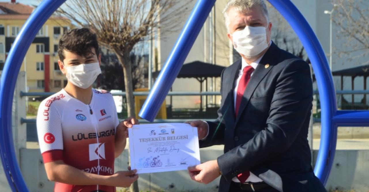 Türkiye Bisiklet Federasyonu’nun düzenlediği Yol Bisiklet Yarışları – 2020 Yıldız Erkekler Klasmanı’nda 4’üncü olan bisiklet sporcularının teşekkür belgesi etkinliğinde konuşan Lüleburgaz Belediye Başkanı Murat Gerenli, "Bisiklet dostu kent olan Lüleburgaz’da başarılarınızın artarak devam edeceğine inanıyorum” dedi.