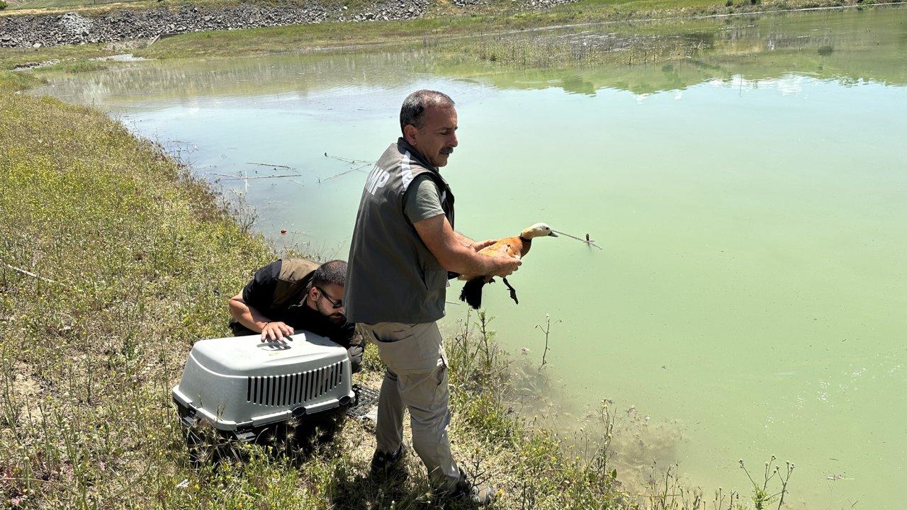 Erkek angut kuşu, 10 yavru ile Tunceli-Elazığ kara yolunun 35'inci kilometresindeki Göktepe köyü mevkisinde sürücüler tarafından bitkin halde bulundu. İhbarla bölgeye giden Doğa Koruma ve Milli Parklar Şube Müdürlüğü ekipleri, angutu ve 10 yavruyu alarak, bakım ve beslenmelerini yaptı. 2 günlük bakımın ardından kendilerine gelen kuşlar bulundukları kara yoluna 3 kilometre uzaklıkta bulunan Keban Baraj Gölü'ne salındı. Dişi bir angut kuşu da bir süre sonra yavru kuşların yanına geldi. (DHA)