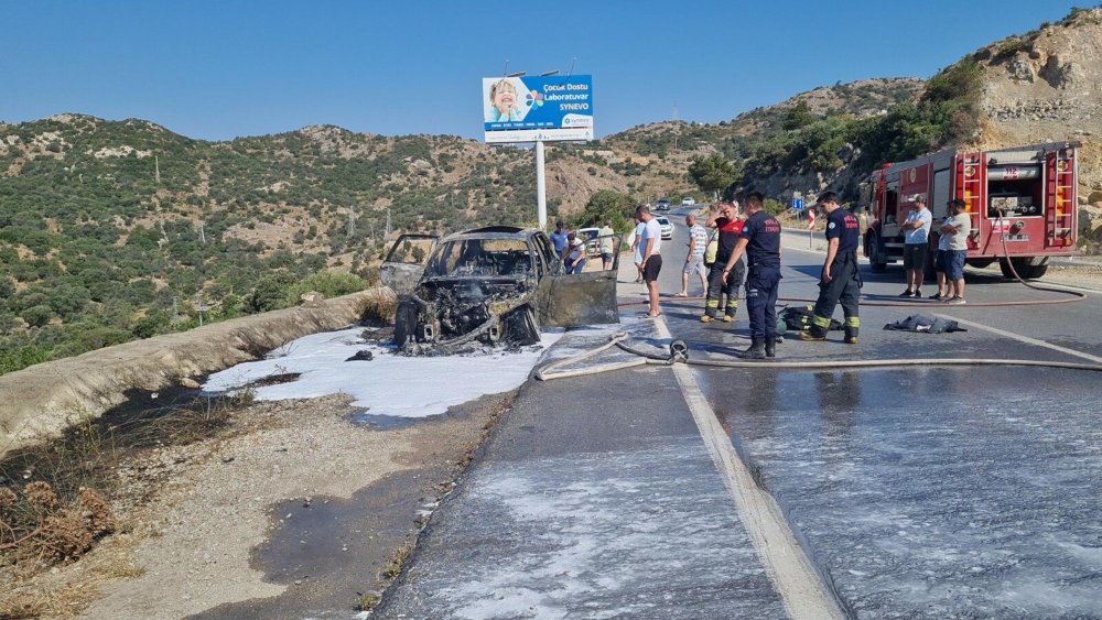 Yalıkavak'tan Bodrum yönüne gitmekte olan İbrahim B.'nin kullandığı otomobil, saat 09.00 sıralarında, bir anda alev aldı. İbrahim B., otomobilini yolun sağına çekti. Ardından da aracından inerek yangın söndürme tüpüyle alevlere müdahale etmek istedi. Ancak, yangın söndürme tüpü çalışmadı. Alevler kısa sürede tüm aracı sarıp, yol kenarındaki otlara da sıçradı. Yoldan geçen diğer araç sürücülerin ihbarı üzerine gelen itfaiye ekipleri, alevleri söndürdü. Otomobil demir yığınına döndü.