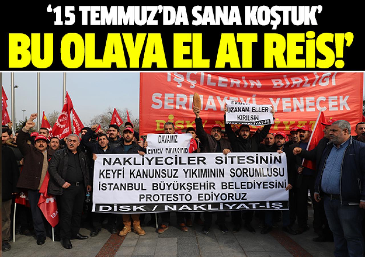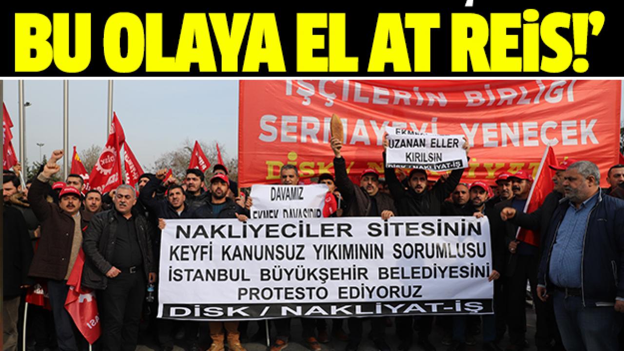 Zeytinburnu'ndaki Nakliyeciler Sitesi'nde önceki gün başlanan ve dün tamamlanan yıkımı protesto eden nakliye işçileri İstanbul Büyükşehir Belediyesi önünde bir eylem yaptı. DİSK’e bağlı Nakliyat-İş Sendikası'nın çağrısıyla bir araya gelen nakliyeciler yıkımın hukuksuz olduğunu iddia ederek, Cumhurbaşkanı Recep Tayyip Erdoğan'a “Bu haksızlığa engel ol” diye seslendi.