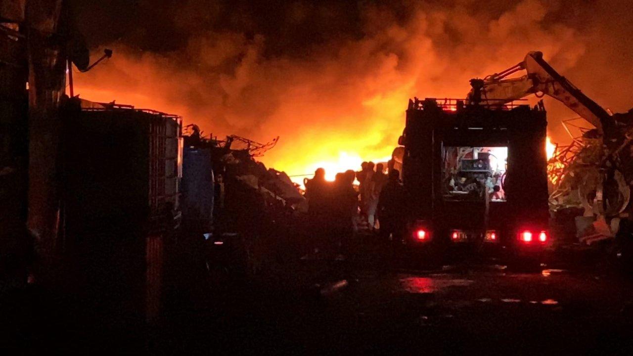 Yangın, saat 21.30 sıralarında Cumhuriyet Mahallesi Yıldırım Beyazıt Caddesi'nde faaliyet gösteren OSB'deki geri dönüşüm tesisinde çıktı.