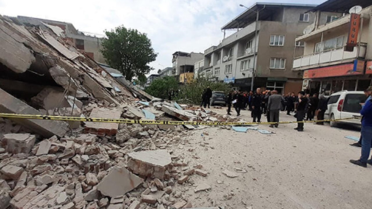 DHA- Bursa'nın Yıldırım ilçesinde, yıkımı yapılan 4 katlı bina çöktü. Çökme sonucu devrilen ağaçlar yoldan geçen otomobilin üzerine düştü. Can kaybı ve yaralananın bulunmadığı olayda, AFAD ekipleri köpeklerle arama yaptı.