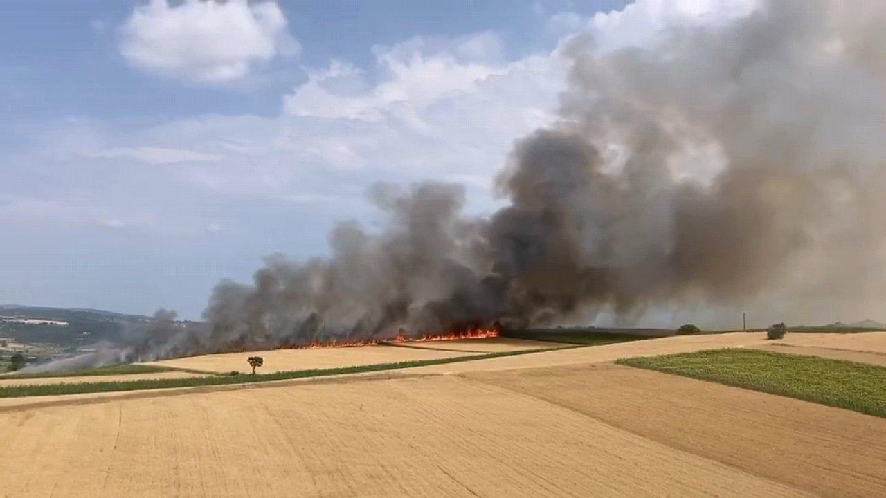 Hamzabey Mahallesi'nde saat 10.30 sıralarında iddiaya göre enerji nakil hattına çarpıp yanarak düşen yabani kuşlar tarlada yangına neden oldu. Alevler rüzgarın da etkisiyle kısa sürede büyürken, ihbarla bölgeye itfaiye ve Orman İşletme Müdürlüğü ekipleri sevk edildi. Yangın 1 saatte kontrol altına alınıp söndürüldü. Yangında ekili 80 dönüm buğday yandı.