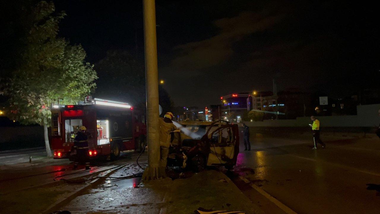 Kaza, saat 03.00 sıralarında Nilüfer ilçesi İhsaniye Mahallesi'nde meydana geldi. İzmir Yolu Caddesi üzerinde seyir halinde olan H.E.D.(25) yönetimindeki 16 YBG 29 plakalı hafif ticari araç, sürücüsünün kontrolünden çıkarak yön levhası direğine çarptı. Çarpmanın şiddetiyle alev alan hafif ticari araçtan kendi imkanlarıyla çıkan sürücü, yaralandı.