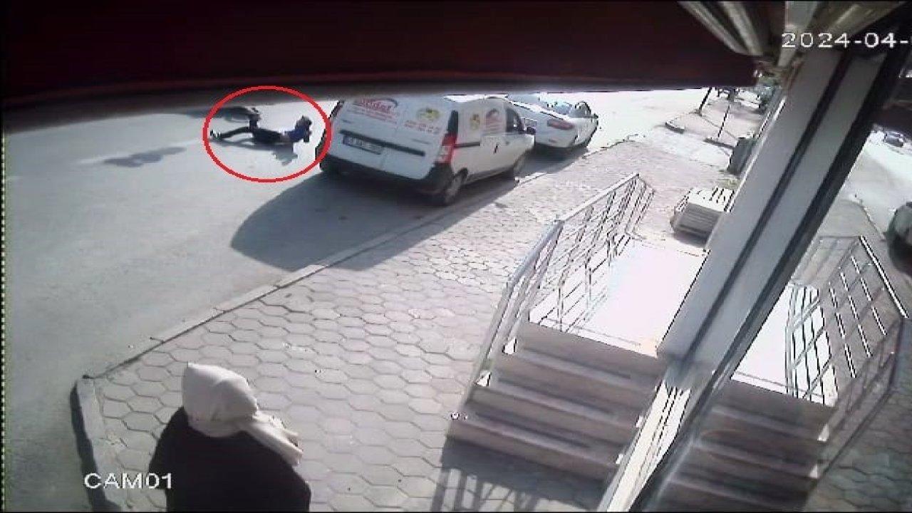 Bursa'da motosikletin çarptığı Bünyamin U. (15) ile araçtan düşen sürücü İsa K. (43) ve arkasındaki oğlu Muhammet K. (12) yaralandı. Kaza anı, güvenlik kamerasına yansıdı.