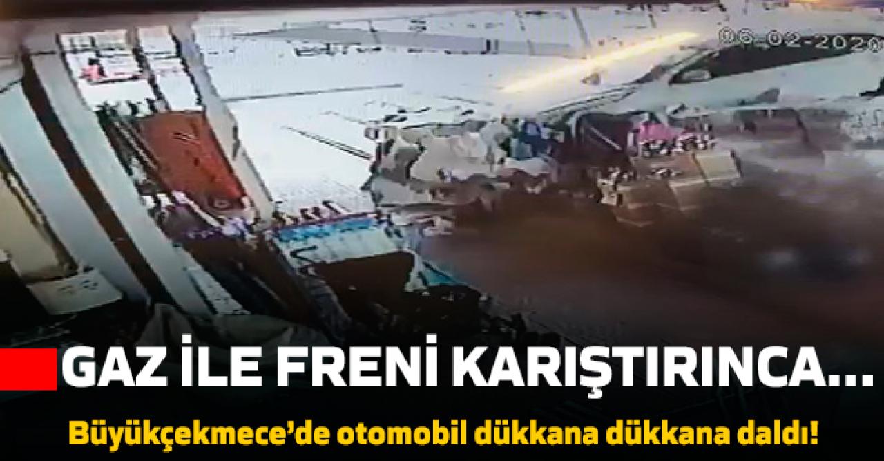Büyükçekmece'de iddialara göre gaz ile frenin yerini karıştıran kadın sürücü, beyaz eşya dükkanına daldı. O anlar güvenlik kameralarına yansıdı.