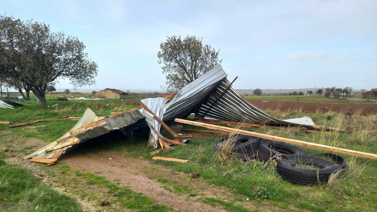 Çanakkale'de fırtına, hayatı olumsuz etkilemeye devam ediyor. Ezine ilçesine bağlı Üvecik köyünde, Mustafa Köroğlu'na ait 130 küçükbaş hayvanın bulunduğu ağılın çatısı uçtu. İlçe Tarım Müdürlüğü ekiplerince bölgede hasar tespit çalışması başlattı. Öte yandan Ayvacık ilçesine bağlı Cemaller köyünde etkili olan fırtına nedeniyle 1 dam ve 1 ağıl zarar gördü. Bölgede hasar tespit çalışması başlatıldı.