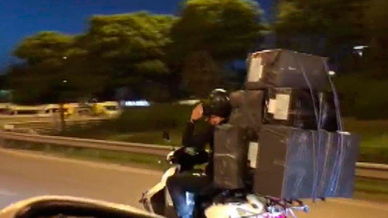 D-100 Karayolu Maltepe mevkiinde bir motosiklet sürücüsünün arkasında taşıdığı 8 büyük koli ile ilerlemesi dikkat çekti.