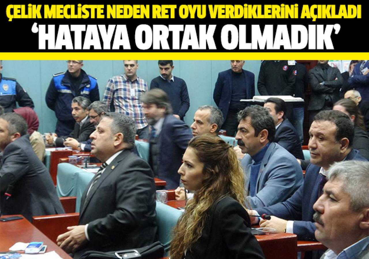 Çelik, yapılan usül hatasına ilişkin ise şu ifadeleri kullandı; “116 sayılı kararı ile Belediye Meclisi'mizden borçlanma talep edilmiş bu borçlanma talebi belediye meclis üyeleri tarafından belediye başkanımız Handan Toprak'a oy çoğunluğu ile borçlanma yetkisi verilmiştir. Borçlanmanın belli nedenlerle ve teminat gösterilmesi şartı aranarak İller Bankası'ndan alınamaması dolayısı ile 2017 senesi devrinden dolayı 2018 Ocak ayı meclis toplantısında tekrar ele alınmıştır. Yeniden gündeme gelen borçlanma talebi usül hatası yapılarak salı günü meclise getirildi. Oysa bu talep komisyonlara gittikten sonra cuma gün ki meclis gündeminde oylanması gerekirdi. Oylamanın suç olduğunu cezai işleme tabi tutulacağımızı müdürlük tarafından yanlış veya eksik bilgilendirme verildiğini bu yüzden oylamanın cuma günü yapılması gerekliliğini anlatmamıza rağmen usül hatası yapılarak oylamanın salı günü yapılmasından dolayı yargı önünde hesap vermemek için red oyu kullandık.”