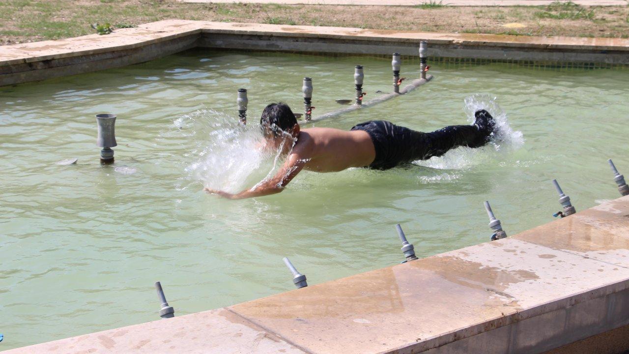 Bolu'da 37 dereceye ulaşan sıcaktan bunalan çocuklar, yasak olan süs havuzuna girip, serinlemeye çalıştı.