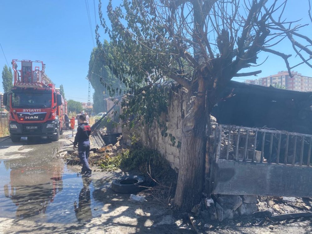 Kayseri'de boş araziye atılan torpil nedeniyle çıkan, yandaki müstakil ev ile bahçesine sıçrayan yangın, 2 saatte söndürüldü. Yangında ev kullanılamaz hale geldi.