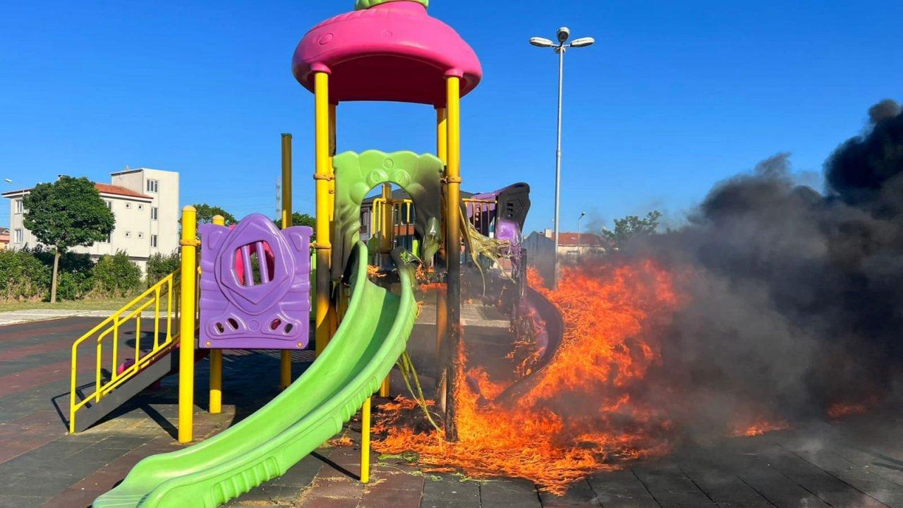 DHA- Tekirdağ'ın Çorlu ilçesi Halide Edip Adıvar Parkı'nda bulunan çocuk oyun grupları yakıldı. Çorlu Belediye Başkanı Ahmet Sarıkurt, "Çocuklarımızın kahkahalarıyla şenlenen, vatandaşlarımızın bir nebze de olsa nefes aldığı parktaki yangın, itfaiye ekipleri tarafından kısa sürede söndürülse de bu manzara hepimizi çok üzdü. Adli makamlara bildirilen konunun takipçisi olacağız" dedi.